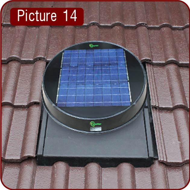 Note: For optimum effect, install the Zepher unit as high as possible, 3rd tiles from the top (ridge or wall). Make sure tiles opening is clear of the rafters and cut off any ceiling of roof panels, sarkers or insulations that may obstruct air flow. Ensure all cutting is performed nicely if it can be seen from the bottom. Do not cut any battens or structural part of the roof or ceiling.
